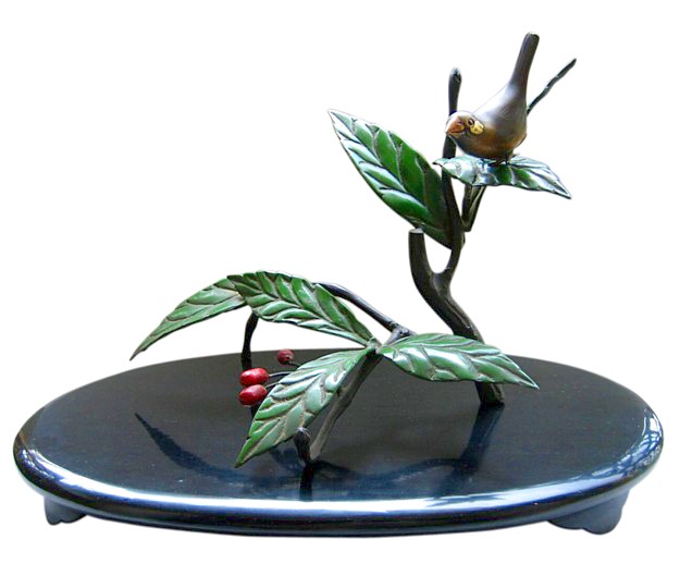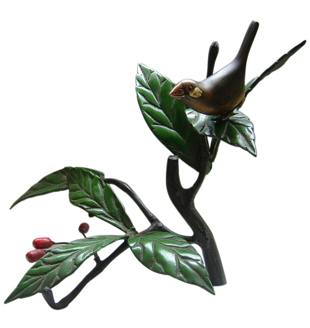 Интерьерная кабинетная композиция в виде маленькой птички, сидящей на ветке
