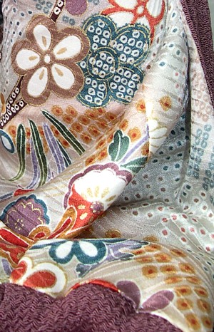 Ее дорогое парчовое кимоно с сиреневой шелковой подкладкой и