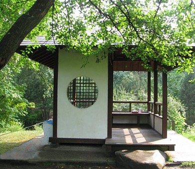 Антикварная цуба японского меча с изображением на тему Окно в Сад