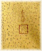 Картина-аппликация из шелка на золотой японской бумаге изображает